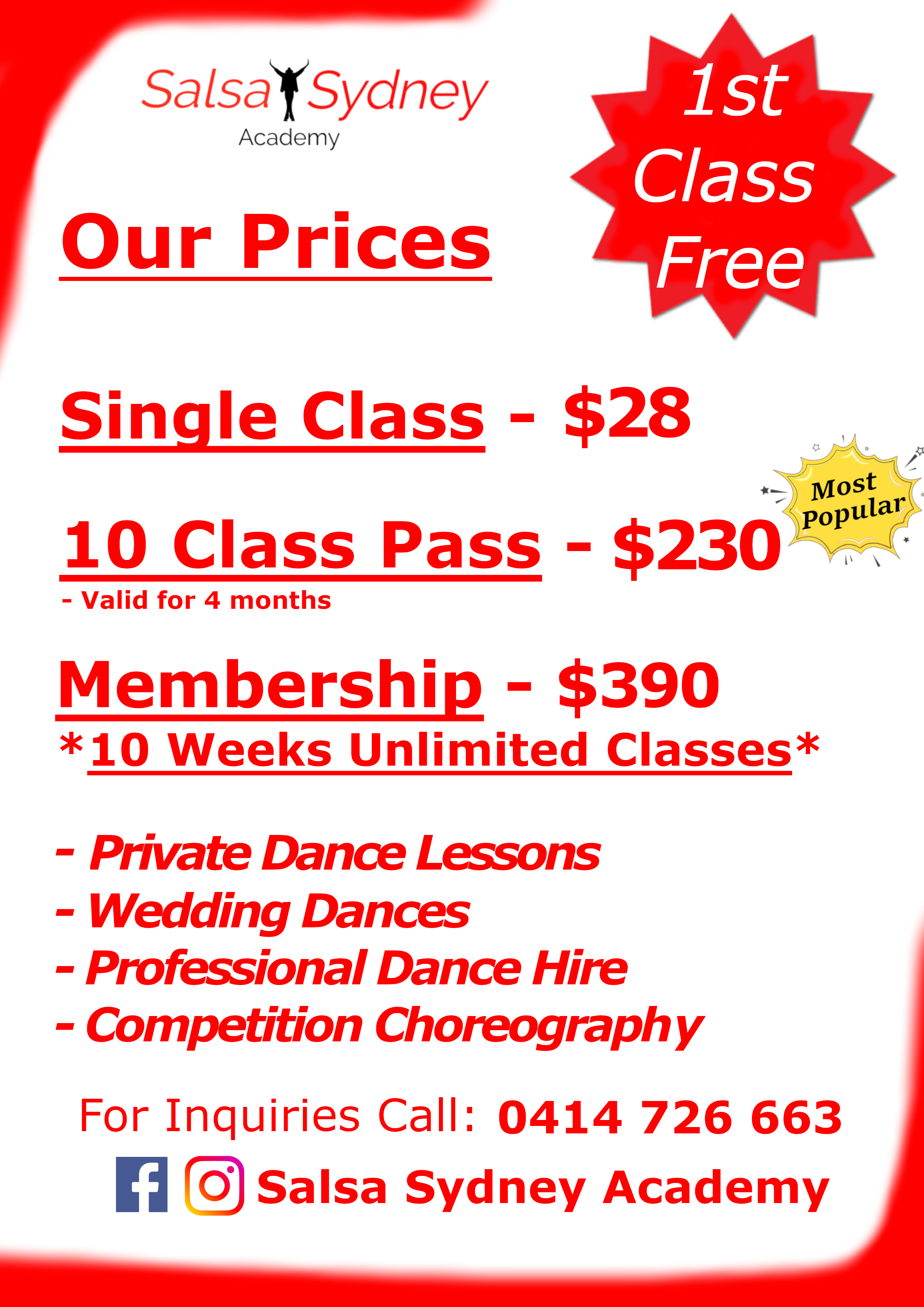 Are you a dance student brand new to the world of salsa classes, or an advanced dancer looking for a studio to train in? Browse below for a range of salsa class passes at the Salsa Sydney Academy.